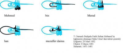 苏丹穆拉德二世统治时期,增加了意味着胜利的“muzaffer”一词,他的签名变成了“Murad bin Mehmed Han muzaffer”。马哈迈德二世后,加入了“el-Muzaffer daima”(曾获胜),签名成为了“Mehmed bin Murad Han muzaffer daima”。从苏丹塞利姆一世开始,“Şah”一词出现在“汉”之后。马哈迈德三世之后,该词遭弃用。